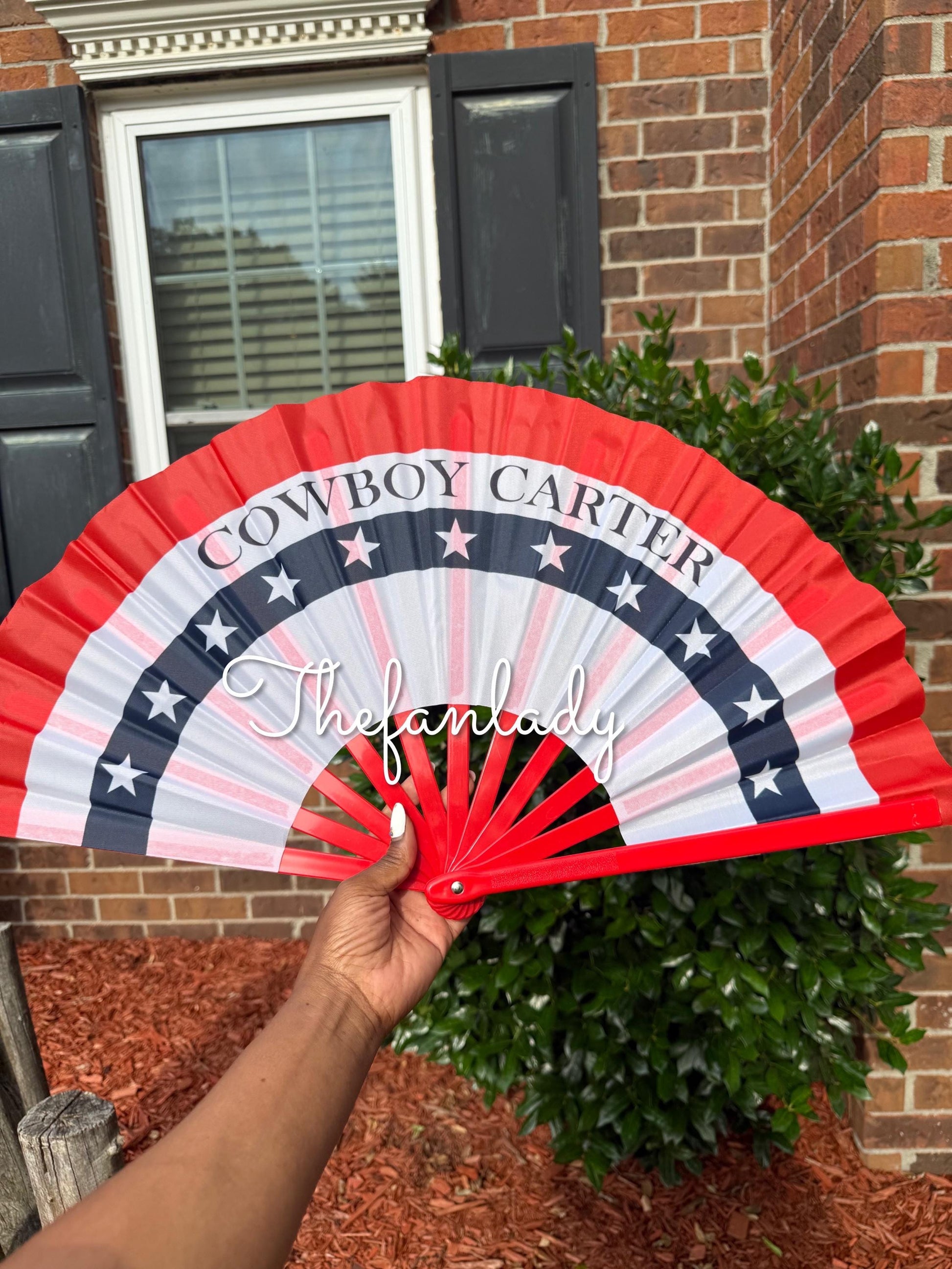 Designed with eye-catching red, white, and blue hues and a striking star pattern, this fan is the ultimate statement piece for concerts, festivals, parades, and themed parties. Whether youre a fan collector, a Beyoncé enthusiast, or just love western glam, this fan is made to turn heads!