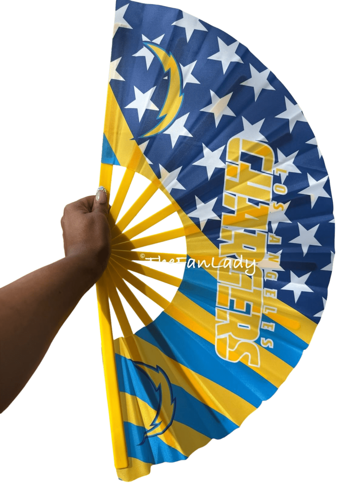 Bring the heat to game day and keep your cool with this Los Angeles Chargers Clack Fan! Perfect for tailgates, stadiums, or just showing off your Chargers pride wherever you go. This handcrafted folding fan combines vibrant Chargers colors and bold designs, making it a must-have accessory for every true fan.