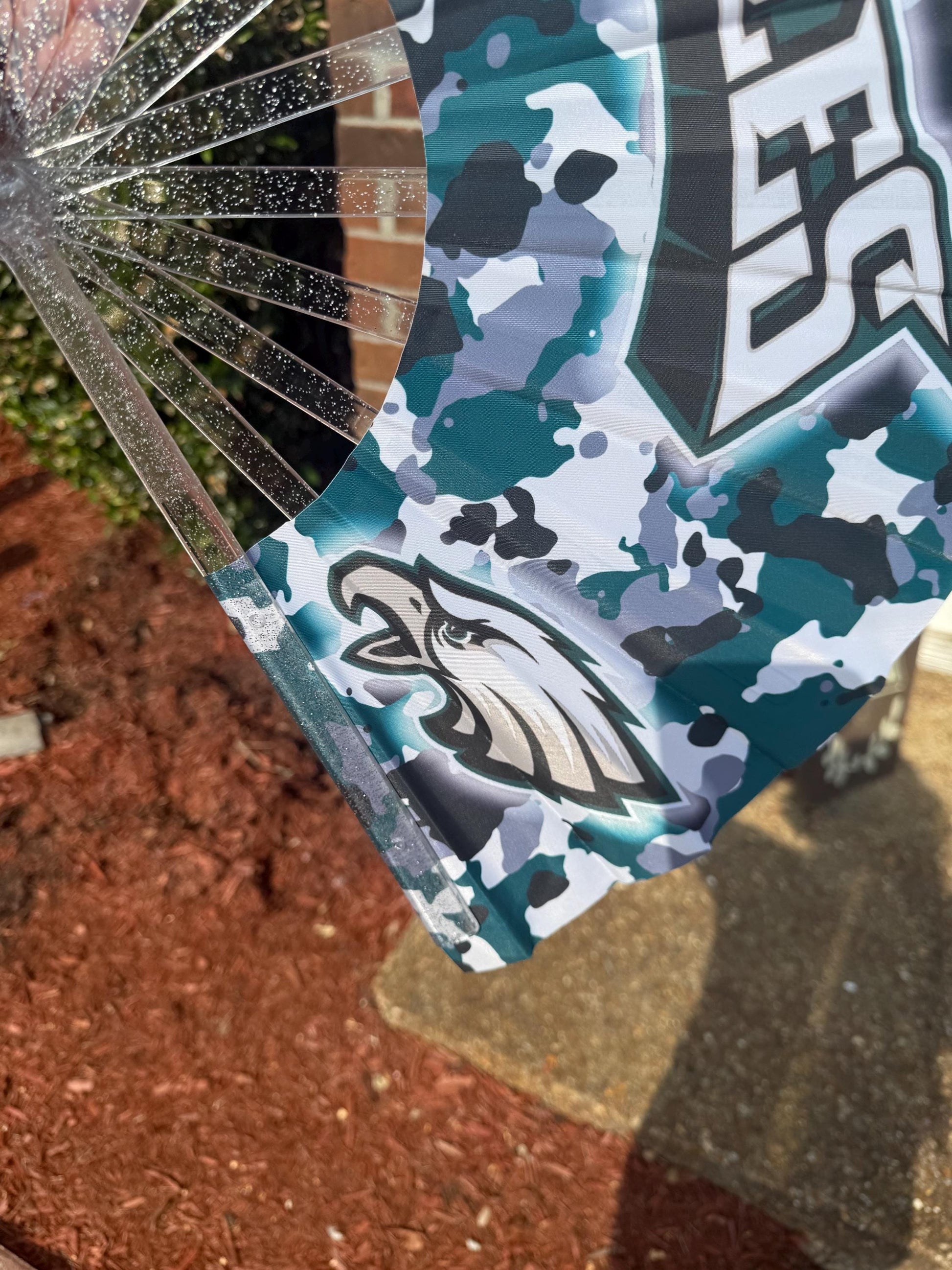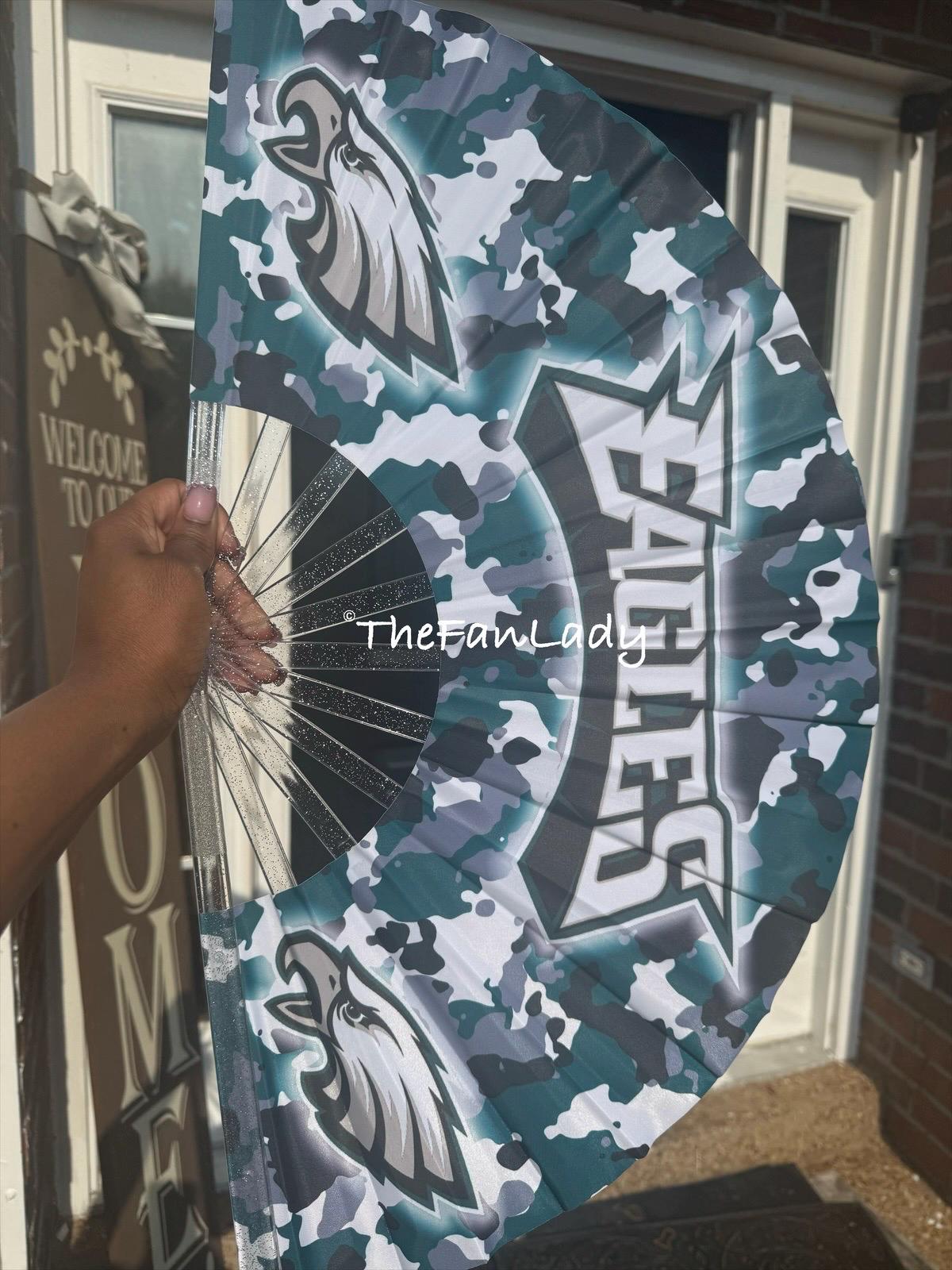 . Featuring the iconic team logo and name across a deep green background, this fan is the ultimate game day accessory for die-hard fans. Whether youβre tailgating, at the stadium, or hosting a watch party, show your Eagles pride with every wave.