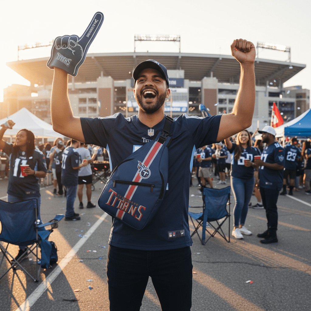 This striking Tennessee Titans sling bag is the perfect hands-free accessory for game day at Nissan Stadium, tailgating parties, or everyday adventures. Featuring the iconic Titans flaming T logo, team name in bold lettering, and signature red and white racing stripes, this bag combines team spirit with practical functionality.